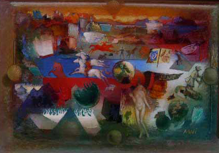 - Expose individuellement et collectivement depuis 1959. Première exposition sous le pseudonyme d’Agni en 1971. C’est sous ce nom qu’il continue à développer une figuration très personnelle, tout en réalisant ici ou là des oeuvres de commande, fonctionnant comme consultant pour les architectes et conduisant depuis 1979 le groupe Vaisseau.