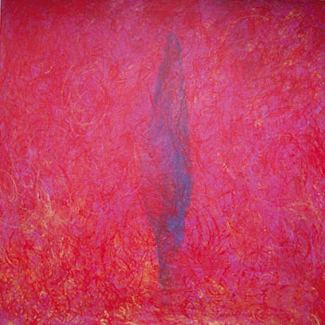 ...la couleur irisée de la flamme qui vacille, cette couleur qui se dissout en fondu enchaîné, graduellement du sombre au clair et vice versa, qui échappe à la saisie, l’artiste la capte au passage, d'abord en ponctuation visuelle nuancée, pour la fixer en tableaux monochromes où la forme disparaît presque pour ne laisser qu’une sorte d’oreille légère qui capterait le son de la lumière diffuse.