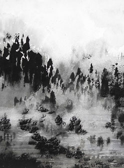Les points de départ de mes encres sont les images que jʼai de la nature, et surtout mes sentiments et impressions liés à elle. Lʼinterprétation que jʼen donne fait appel à une part dʼinconnu que je tente dʼévoquer.