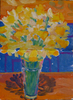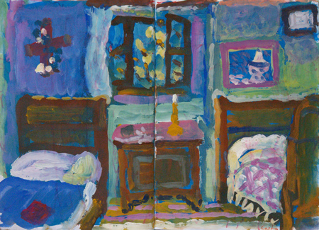 Depuis 1990 mon travail se concentre avant tout sur des livres peints et dessinés. Y figurent, dans une chronologie réinventée, des moments de lieux et des personnes qui m'entourent. L'image traduit un instant : sujets ,variant selon les saisons, moments du dehors et dedans. Je travaille devant le sujet, sans interruption, parfois je recouvre une page déjà peinte. Les livres sont exposés sur des tables inclinées conçues pour leur présentation.