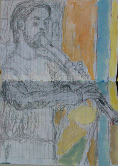 Parallèlement je travaille sur différentes séries de peintures, de dessins ou de gouaches découpées. Ces travaux sont en étroite relation avec une expérience musicale : "Farbklänge", c. à dire, accords de couleur ou couleurs accordés.