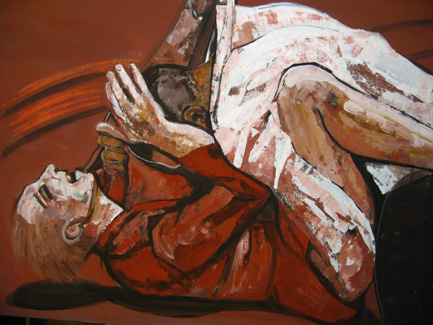 Parcours visuel et mental qui se joue entre ombre et lumière, silence et cris ; en corps à corps ou à corps perdus ; sous l’impulsion originelle d’Eros et de Thanatos, sur la scène de cet étrange et mystérieux Théâtre de la Vie.