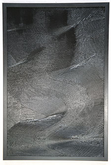 Les "Friselures" découlent d'une observation due au hasard de mes recherches sur l'utilisation d'huiles sur toile. Le Regardeur s'approprie l'espace situé entre son œil et la surface structurée peinte, qui s’accaparant la lumière, modifie l’aspect du tableau.