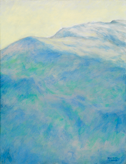 Les montagnes paraissent immobiles. Pourtant, dans un temps différent, elles vivent leur vie de montagne, faite de jaillissements, de sédimentation et d’érosion. Ce n’est pas par hasard qu’une démarche non figurative produise quelque chose qui ressemble à une montagne. Jaillissements, sédimentation et érosion se retrouvent (en raccourci!) dans les affrontements de l’atelier et le peintre espère que ses montagnes continueront leur vie dans le regard des spectateurs.