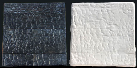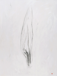 ...la couleur irisée de la flamme qui vacille, cette couleur qui se dissout en fondu enchaîné, graduellement du sombre au clair et vice versa, qui échappe à la saisie, l’artiste la capte au passage, d'abord en ponctuation visuelle nuancée, pour la fixer en tableaux monochromes où la forme disparaît presque pour ne laisser qu’une sorte d’oreille légère qui capterait le son de la lumière diffuse.