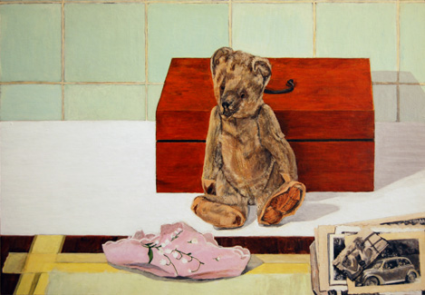Quand Claude peint, elle allume la lumière que ce soit le jour ou la nuit. Comme dirait Krazy Kat, elle éteint le noir. Elle travaille à l'acrylique sur carton. Des thèmes la traversent. Quelquefois elle peint plusieurs peintures sur le même sujet: les canards, les boîtes, les femmes algériennes. Elle travaille l'image avec précision. Elle raconte là quelque chose qu'elle ne dit jamais avec les mots. Elle rassemble dans un ordre qui n'appartient qu'à elle ce qui lui tient profondément à coeur. Elle éteint le noir.